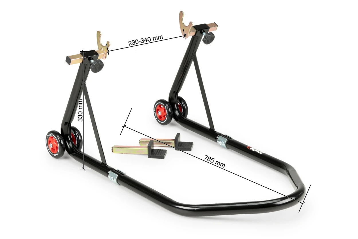 Cavalete traseiro Puig 4322N. Inclui um jogo de adaptadores para os suportes cavalete (diabolo) e um jogo de ângulos por se prende diretamente ao basculante.