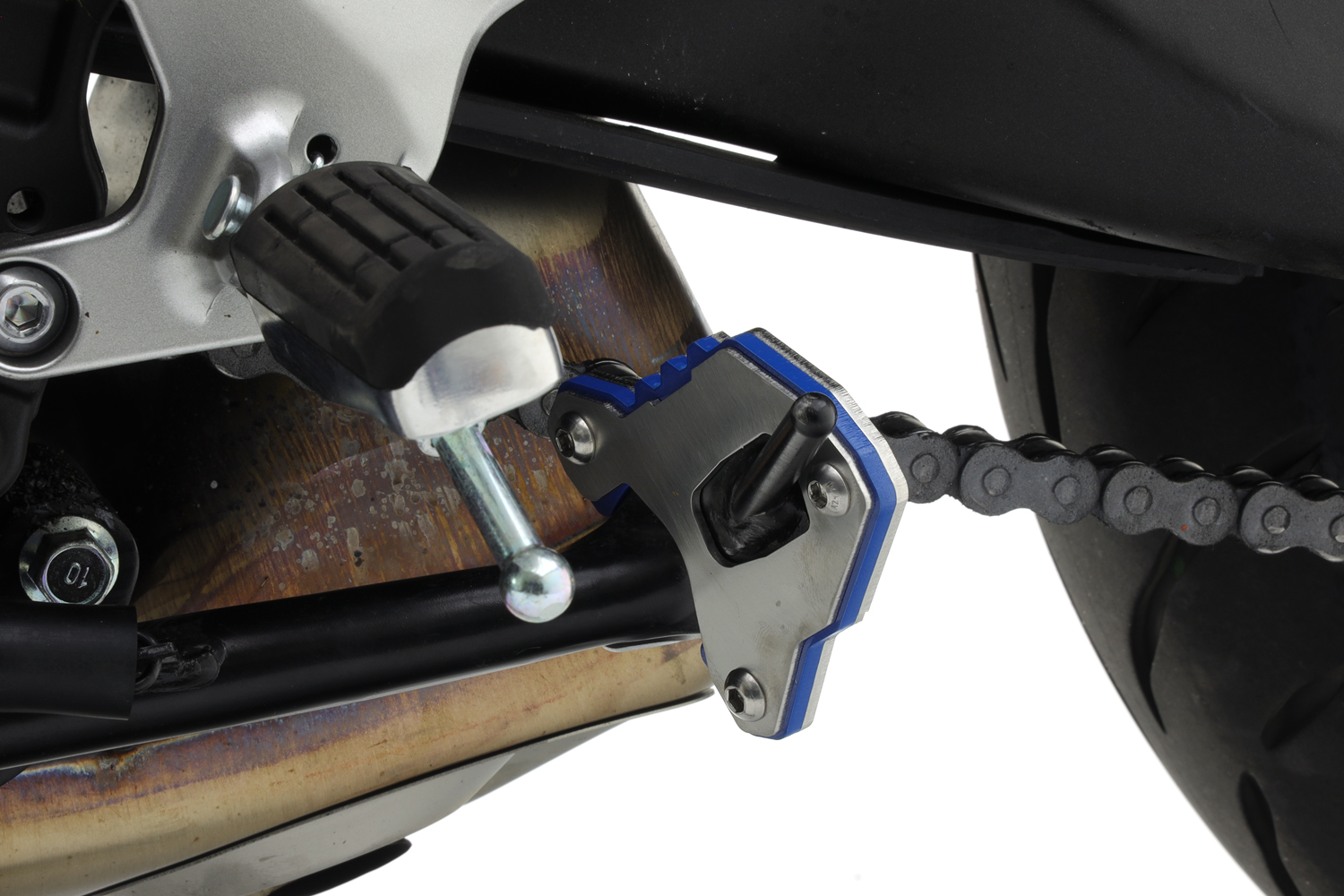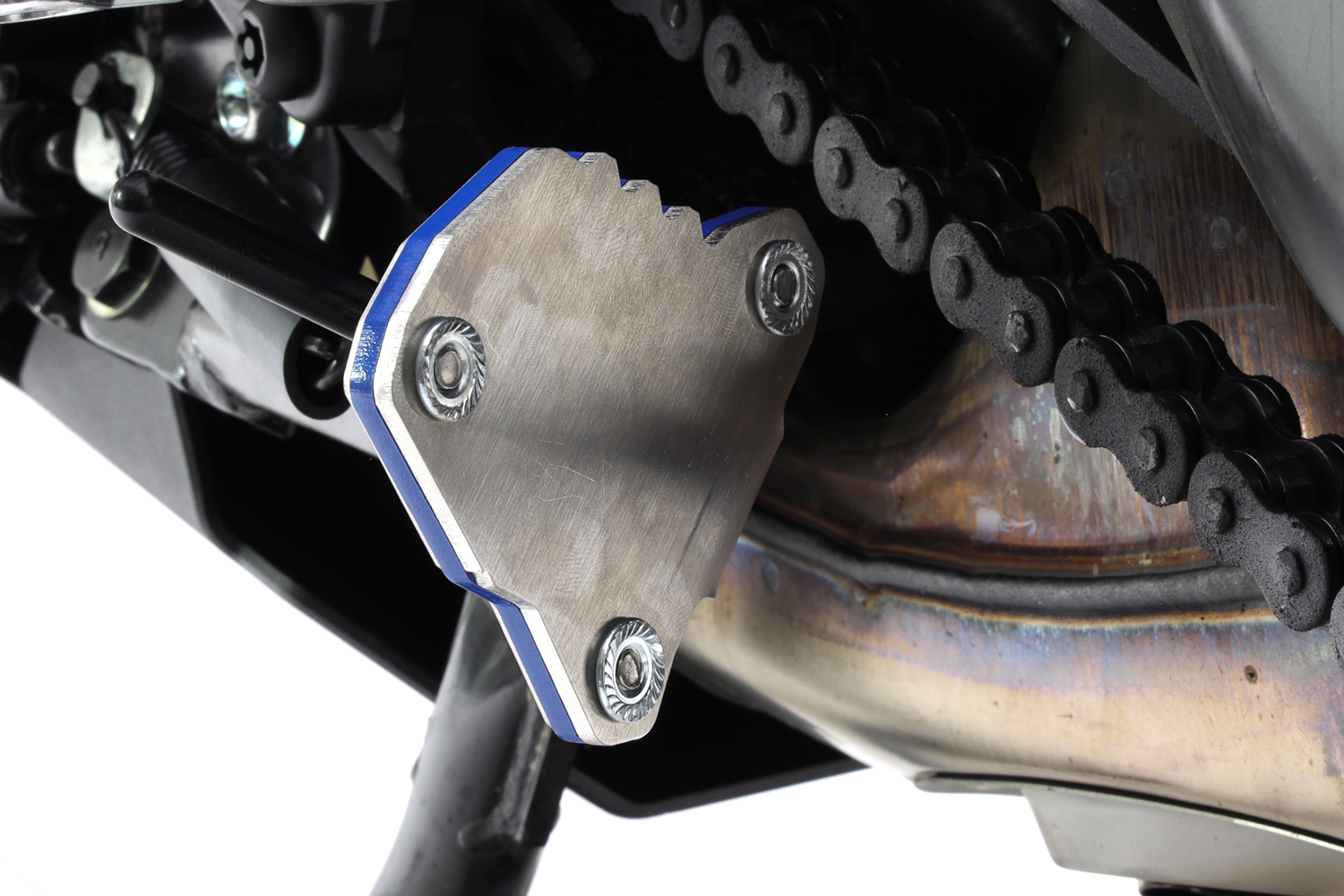 Combina aço inoxidável e alumínio permite aumentar a área de apoio da moto
