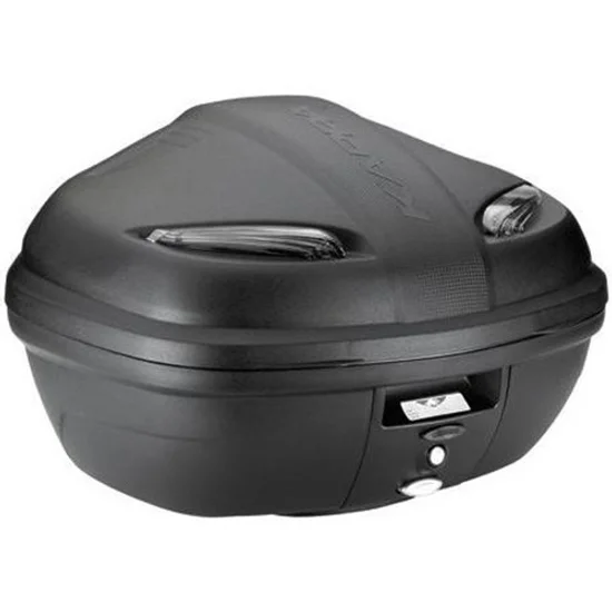 Top Case com capacidade de 47 litros, em cor preta e equipado com refletores fumados. Base Universal K628 incluída.